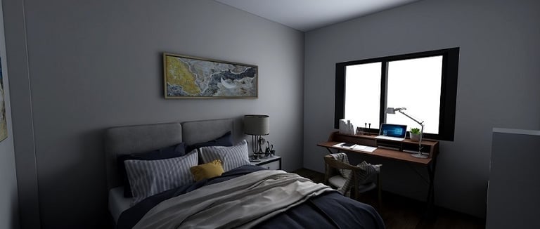-Verificar líneas de visión desde la cama, sillones y circulación